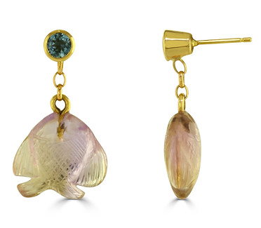 An Angel fish is a species that may appear in many differing colour patterns and have inspired these earrings. Their presence around coral contributes to the beautiful harmony of the reef. The way the light interacts with the scales of the swimming fish never ceases to surprise me.